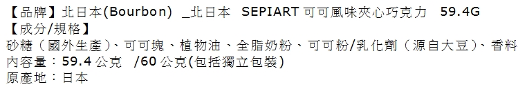 Bourbon 北日本 SEPIART可可風味夾心巧克力 59.4G
